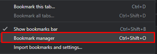 Hoover over Bookmarks and then click Bookmark Manager.