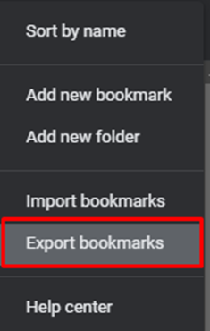 From the drop-down, select Export bookmarks.