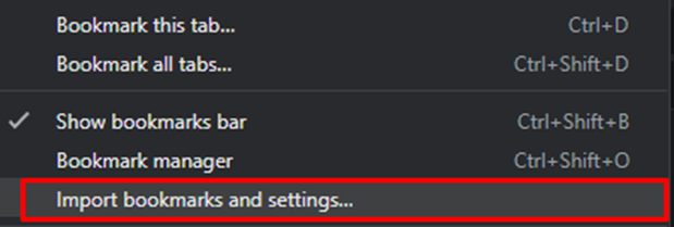 Hoover over bookmarks and select Import Bookmarks and Settings.