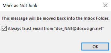 - If a windows pops up follows, you can choose if you want to always trust email from that sender and click OK.