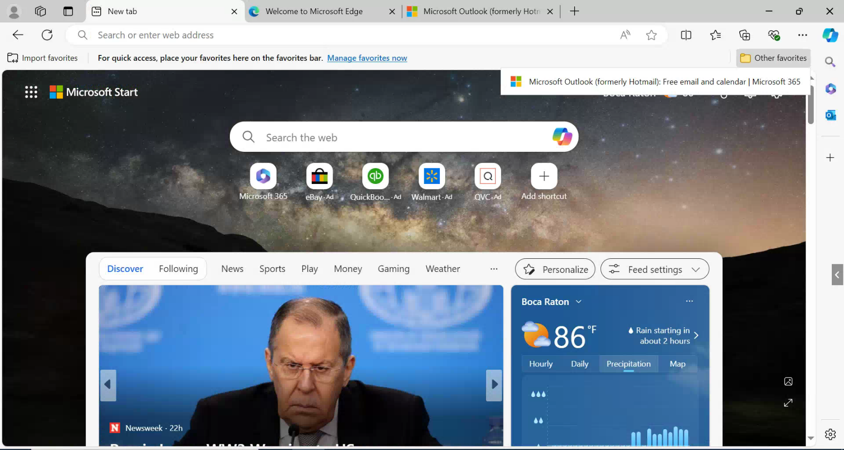 - Click "Finish" and you will be taken to this page. You can see that Edge has automatically created an "Other favorites" folder at the top-right. This is where your bookmarks from Chrome have been saved.