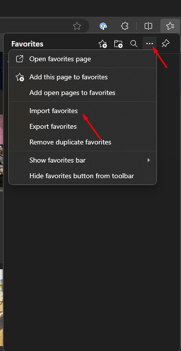 - Click the three dots and then choose "Import favorites".