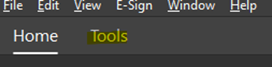 - Click on the Tools tab at the top-left of Adobe.