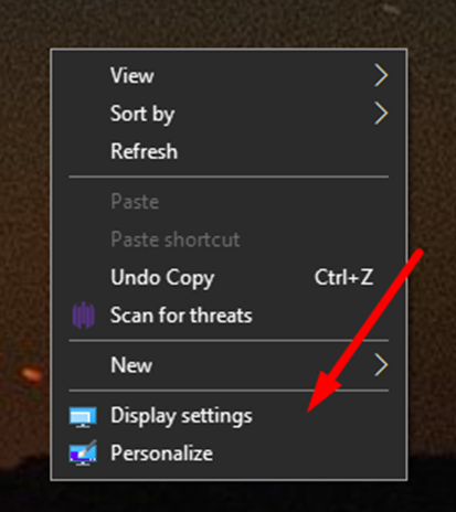- Go to your computer desktop, right-click the background, and choose “Display settings”.