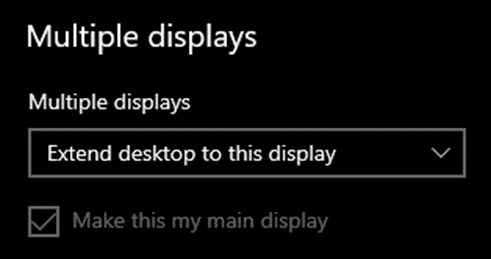 - Scroll down to “Multiple displays” and in the drop-down menu choose if you want to Extend or Duplicate the desktop into that display.