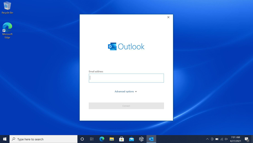 - If this is the first time you open Outlook, use the following sub-steps to create your profile in it. Otherwise, skip to the next bullet point.