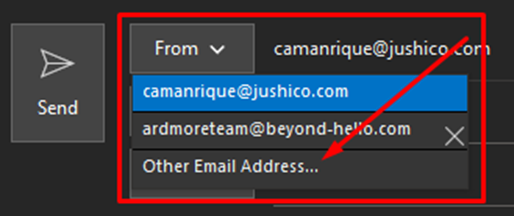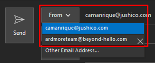 - This process will save the email so you can quickly switch the “From” to and from your work email. Both will appear in the drop-down menu when you go to send an email. Please double check each time you send an email to make sure you are sending your email from the correct “From” email address.