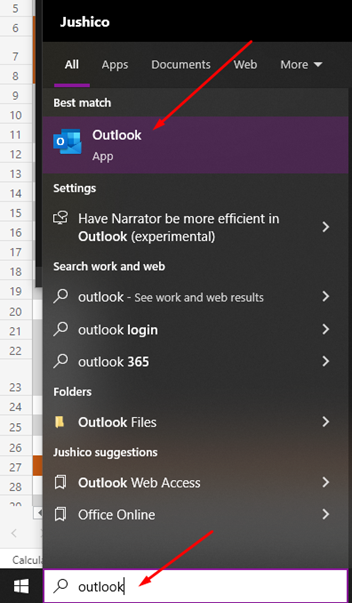 - Open the Outlook app – use the bottom-left Windows search bar and type “Outlook” (without the quotes) and click on the Outlook app.